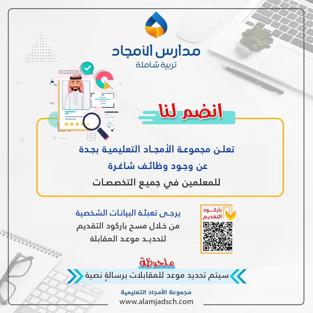 مدارس الأمجاد الأهلية تعلن فتح باب التوظيف للوظائف التعليمية (بجميع التخصصات)