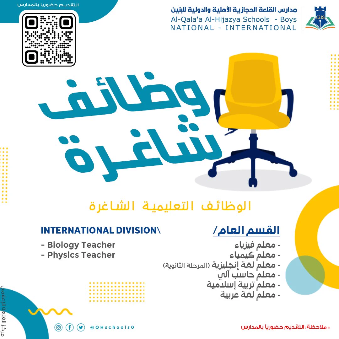 أعلنت مدارس القلعة الحجازية الأهلية بالمدينة المنورة عن توفر وظائف تعليمية شاغرة (بعدة التخصصات)، للعام الدراسي الجديد 1445هـ، وذلك لبقية التفاصيل وطريقة التقديم الموضحة أدناه.